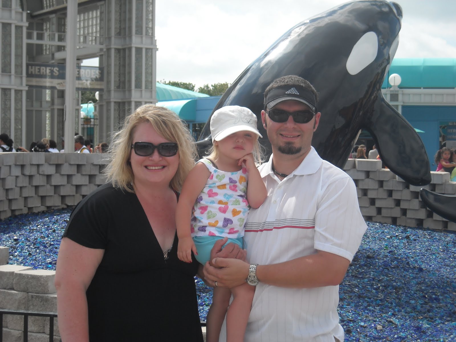 Grace and Daddy....where we got to feed and touch the dolphins.