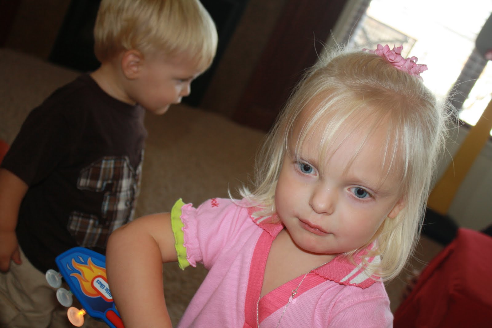 Grace and Brayden hanging out with Papa Harley. (i think they are getting money from him)